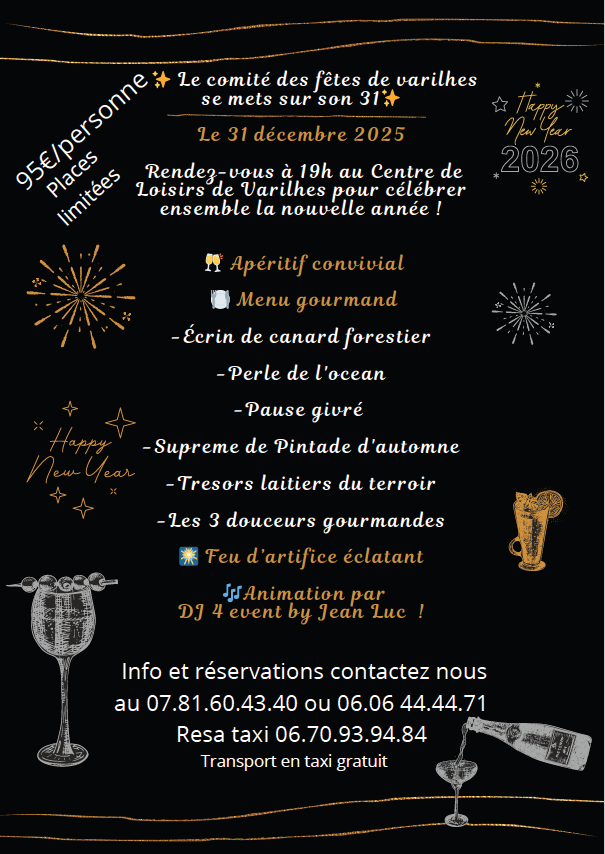 Le Comité des Fêtes de Varilhes vous attend pour célébrer la nouvelle année dans la joie et la bonne humeur !