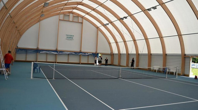 Avec deux courts extérieurs et un court couvert, l’ensemble est muni d’un éclairage pour pouvoir jouer en nocturne.