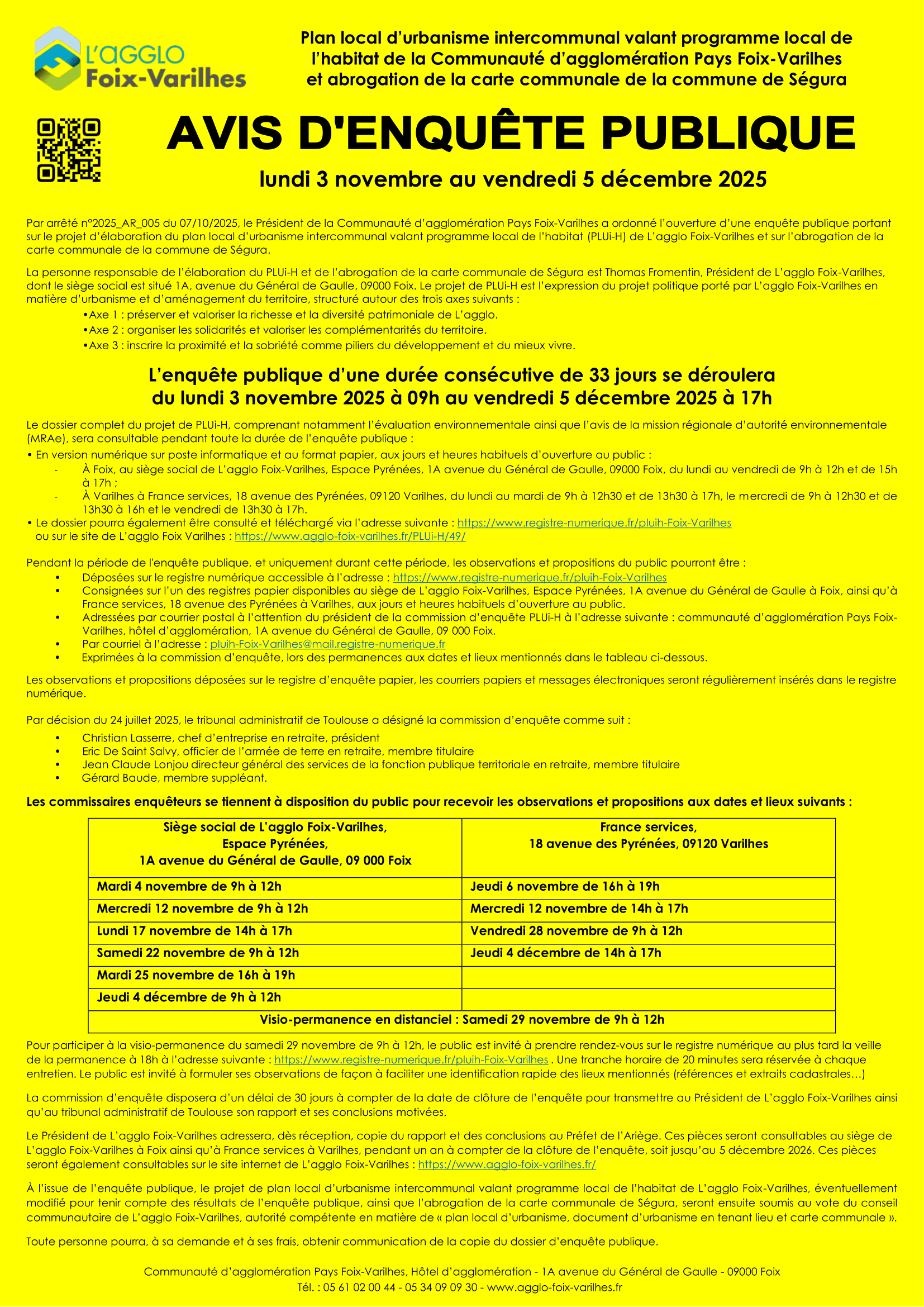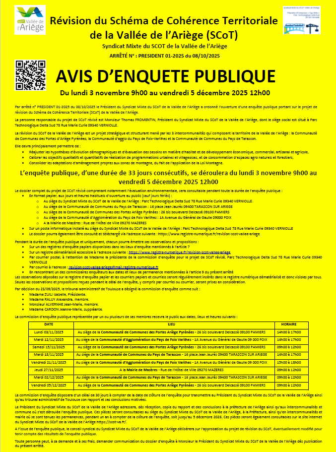 Secrétariat de Varilhes ouvert au public les lundis et vendredis de 9h à 12h30.
