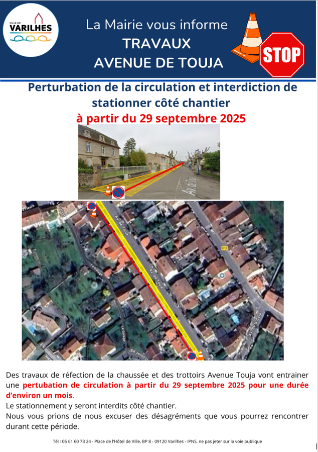 Des travaux de réfection de la chaussée et des trottoirs auront lieu sur l’Avenue Touja à partir du 29 septembre, pour une durée estimée à environ un mois.