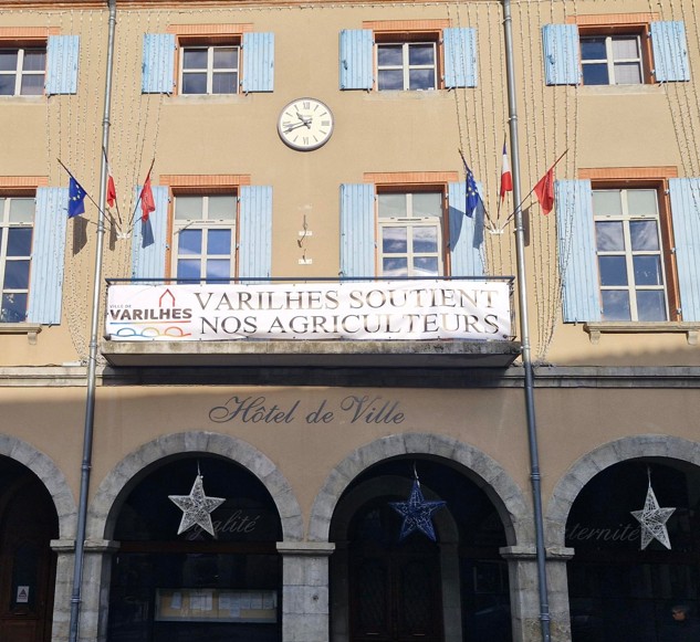Une banderole en soutien au monde agricole a été apposée sur la façade de la Mairie de Varilhes. La municipalité a aussi voulu montrer que les Varilhois(es) étaient aux côtés des éleveurs et de la filière agricole et solidaire de leurs actions.