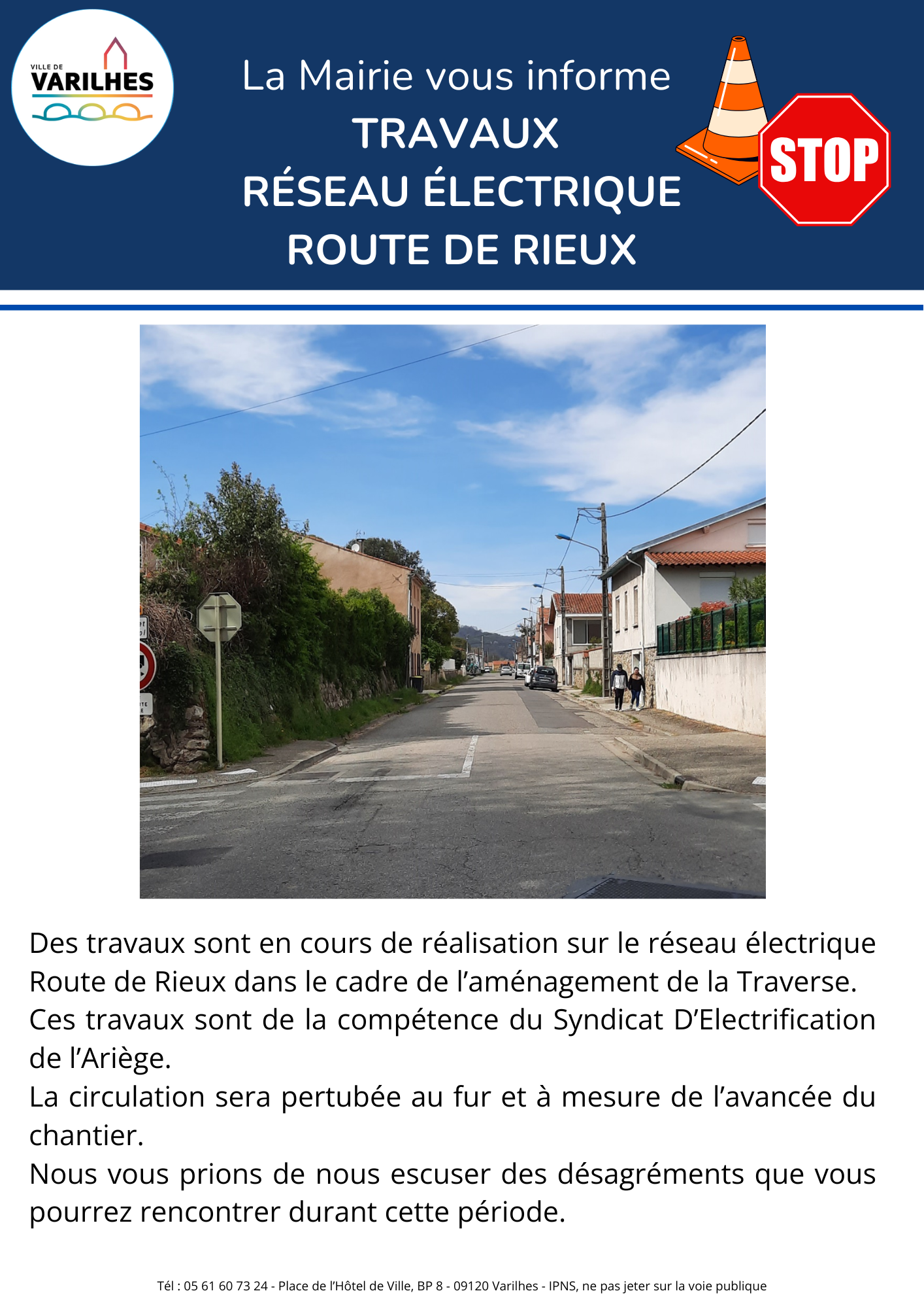 Des travaux sont en cours de réalisation sur le réseau électrique Route de Rieux dans le cadre de l’aménagement de la Traverse.