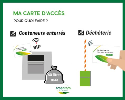 A partir du 1er janvier 2025, la carte d'accès sera obligatoire pour déposer vos déchets dans l'une des 7 déchèteries du SMECTOM*. Les dépôts resteront gratuits pour les particuliers. Les professionnels continueront d'être facturés.